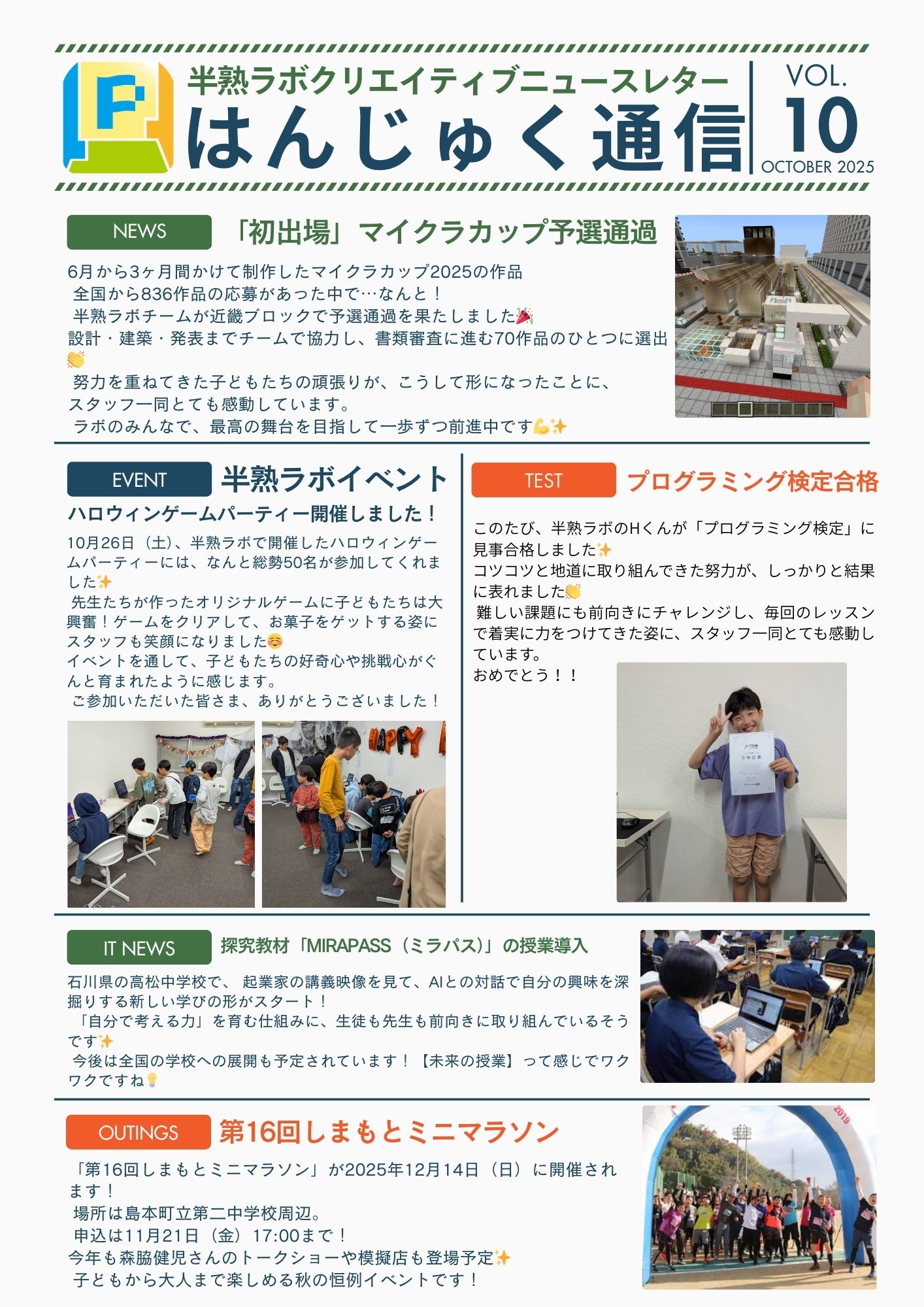 子どもたちの熱い挑戦と笑顔いっぱいの10月の様子をまとめた「はんじゅく通信10月号」を公開しました✨