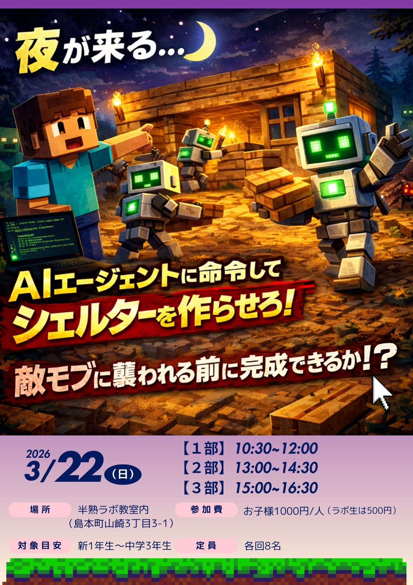 【3月イベント】🤖AI×マインクラフト🟩「AIと挑む、最初の夜🌙」参加者募集!